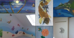 Wände werden durch tapezieren, streichen in verschiedenen Farben und Techniken, Schriftzüge und Wandbilder individuell in Szene gesetzt.